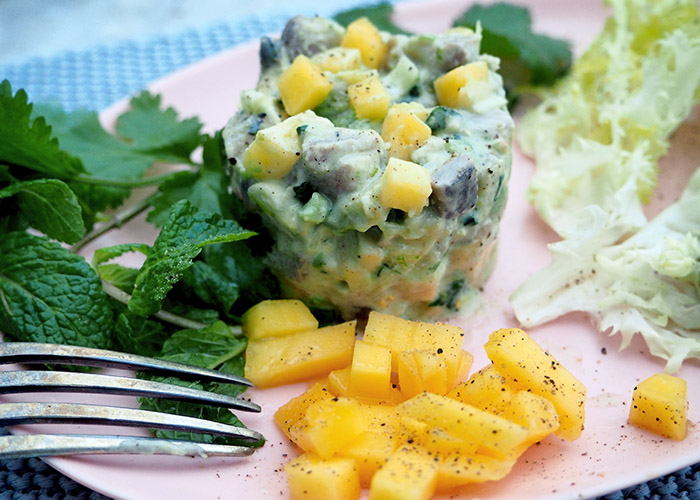 Neuer Matjes – als Tatar mit Avocado und Crème fraîche