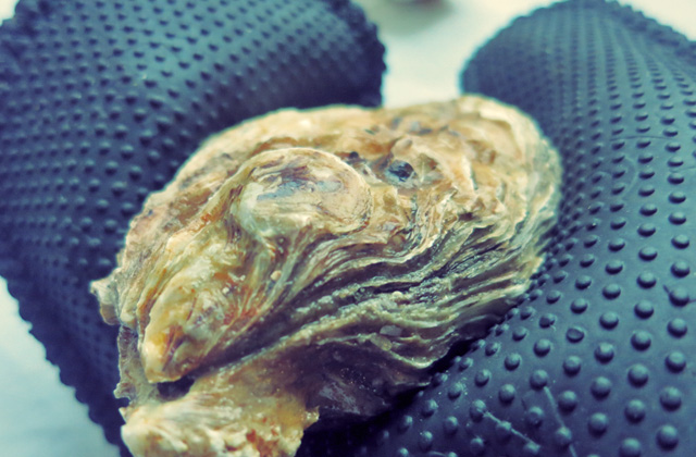 Auster in Handschuh