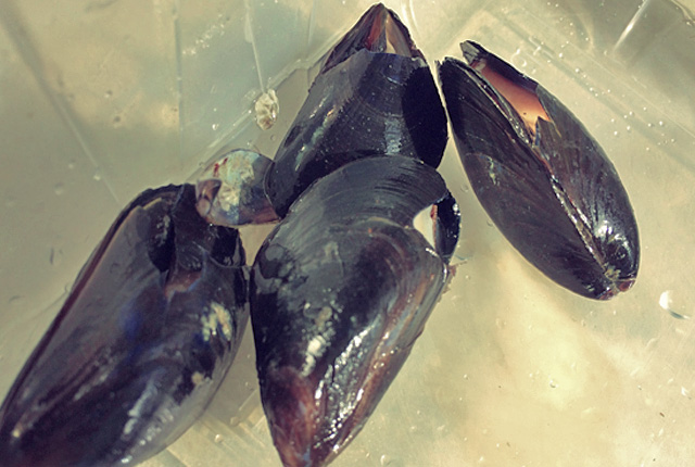 Moules de Bouchot, kaputte Muscheln aussortieren
