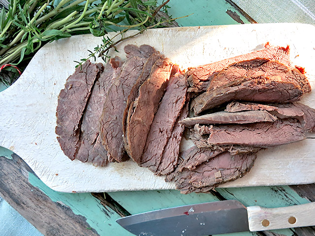 Tafelspitz aufgeschnitten auf Brett