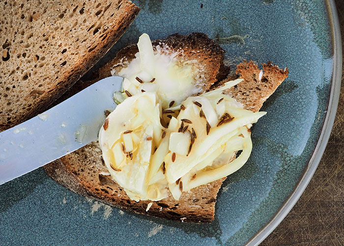 ein Tipp aus Hessen: Handkäse in einer Vinaigrette aus weißem Balsamico, Apfelwein, Ölivenöl. Grob gemahlener Kümmel ist lecker, aber nicht so penetrant wie ganzer Kümmel.