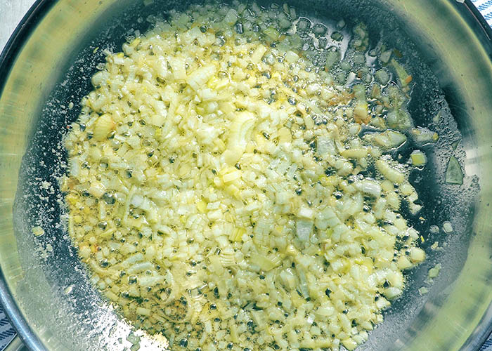Zwiebelwürfel in reichlich Butter schmoren