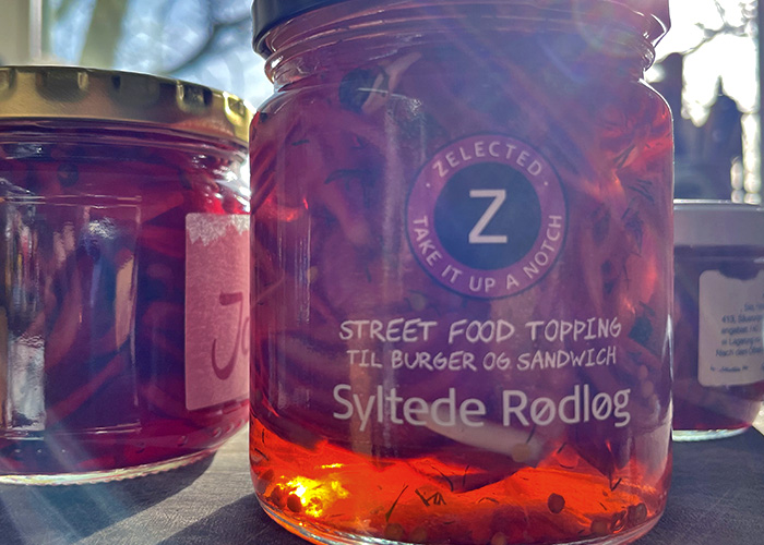 Neu gelabelt als „Streetfood Topping“ ist das Angebot in Dänemark vielfältiger. Im Supermarkt findet man die eingelegten roten Zwiebeln, als  „Syltede rødløg“ für ca. 4 € das Glas, was für dänische Verhältnisse preiswert ist. Für die überschaubare Zutatenliste von Zwiebeln, Branntweinessig, Wasser und Zucker ist das aber auch kein Schnäppchen. Günstiger ist es, sie schnell selbst einzulegen.