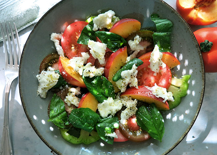 Tomaten Nektarinen „Caprese“ mit Mozzarella & Basilikum