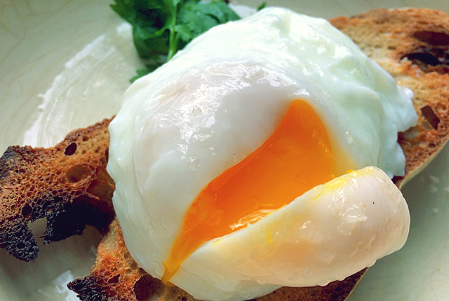 Portugiesische Brotsuppe mit Ei auf Teller