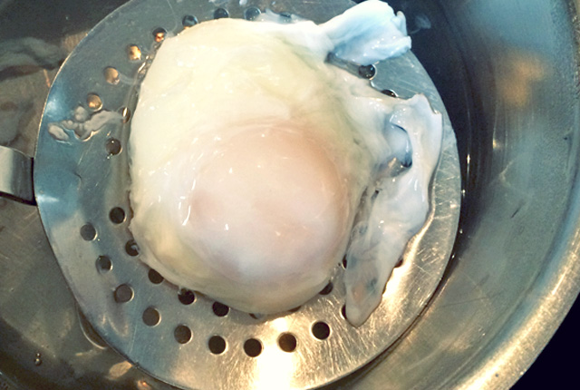 Pochiertes Ei auf Schöpfkelle