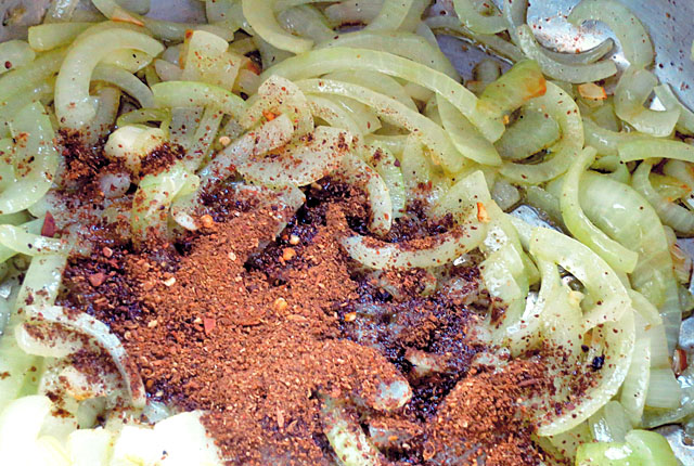 Angebratene Zwiebeln für Marokkanisches Beef Tajine in Pfanne