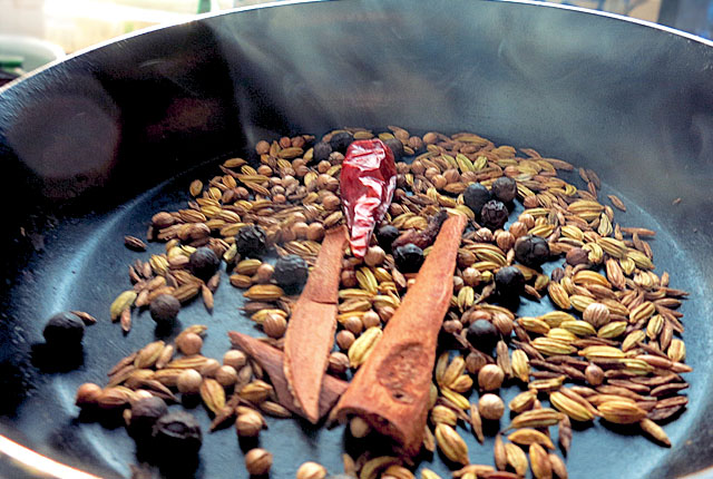 Dampfende Gewürze für Marokkanisches Beef Tajine in Pfanne