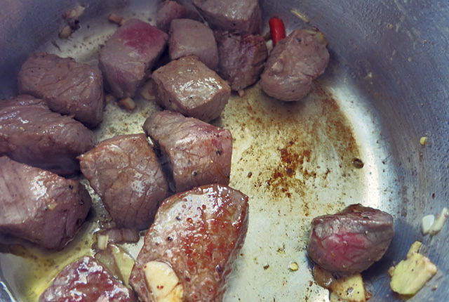 Bo Kho Fleischwürfel anbraten