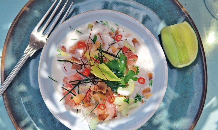 Mit dem heutigen Sommer-Rezept »kaltes Garnelen-Ceviche mit Kokos« geht es an die schönsten Strände der Welt, mit erfrischendem Seafood, einem vorzüglichen Rosé mit schöner Geschichte und einem guten Schuss Rock 'n' Roll. Das Garnelen-Rezept lässt sich keiner Länderküche exakt zuordnen. Durch die Kräuter und Zutaten erinnert es an eine kalte thailändische »Tom Kha Gung«, durch … Weiterlesen Garnelen-Ceviche mit Kokos, Hampton Water Rosé und Rock ’n‘ Roll [Werbung]