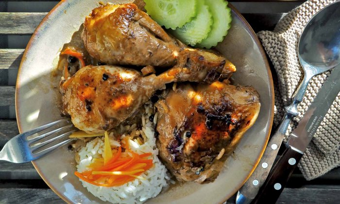 Wie war es möglich, dass sich dieses schöne Bordrezept so lange vor mir verstecken und unter meinem kulinarischen Radar segeln konnte? Dabei kommt das original philippinische Adobo mit nur einer Handvoll Zutaten aus und die Kombination von Knoblauch, Lorbeer und Essig verleihen Schmorgericht einen ganz eigenen, säuerlich-raffinierten Geschmack. Zu einer wahren Köstlichkeit wird Chicken Adobo … Weiterlesen Chicken Adobo mit Kokosmilch – Rezept mit Kurs auf die Philippinen