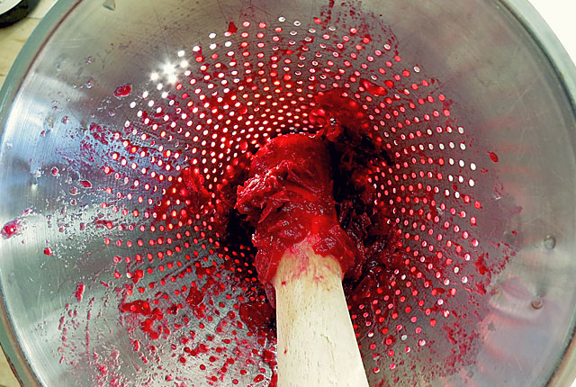 Moosbeeren oder Cranberry Saft DIY durchpressen mit Stößel