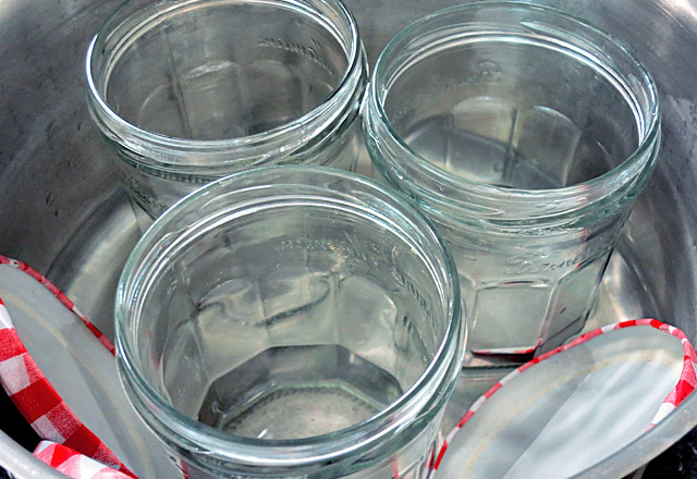 Gurken einlegen, Gläser sterilisieren in Topf