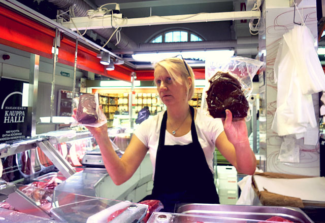 Kaupahalli in Helsinki Marktstand mit Elch und Rentier