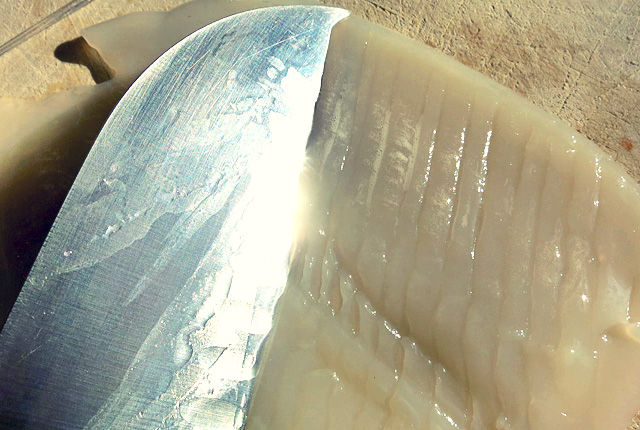 Roher Tintenfisch mit Messer