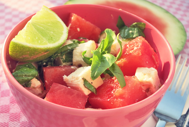 Melonensalat einfach pinke Schale