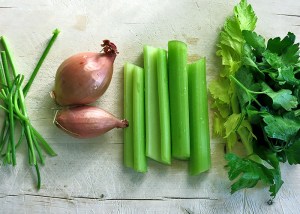 Gemüsezutaten für Miesmuscheln