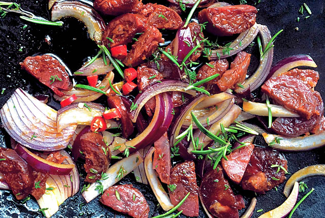 muscheln-im-wok-kra%cc%88uter-angebraten Muscheln Surf and Turf, Kräutersud mit Zwiebeln, Chili, Rosmarin, Thymian