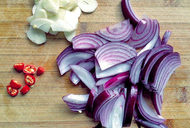 muscheln-im-wok-surf-turf-zwiebeln-chili-knoblauch Zwiebeln, Knoblauch, Chili für Miesmuscheln Bouchot