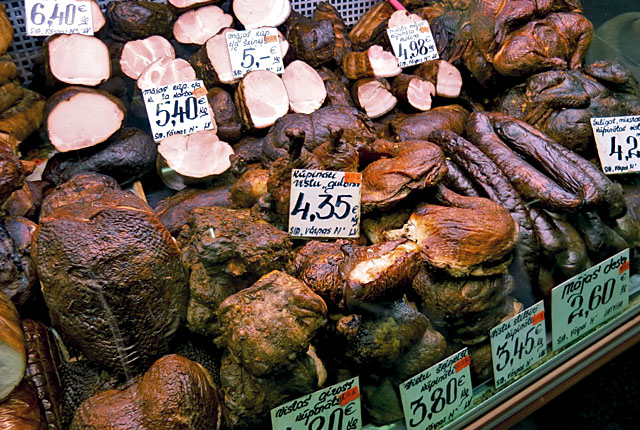Räucherwaren Kassler und Huhn im Zentralmarkt von Riga
