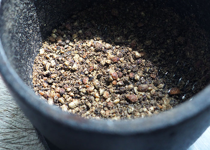 Gewürzmühle mit gemahlendem schwarzem Pfeffer