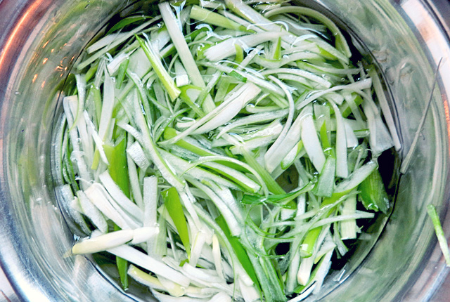 Lauchzwiebeln gewässert