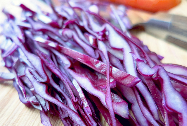 Rotkrautsalat Streifen roh geschnitten