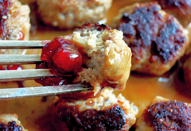 Schwedische Koettbullar auf Gabel