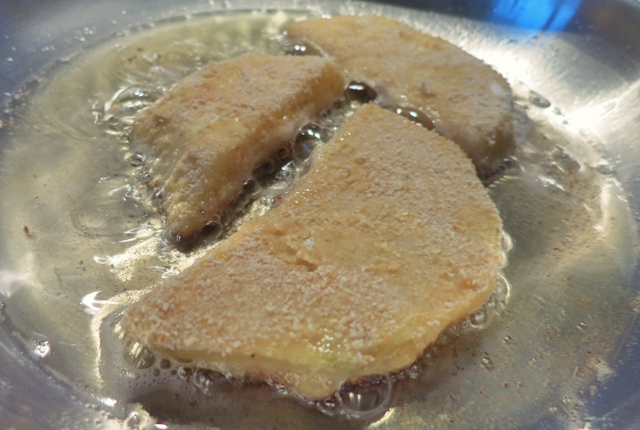 Sellerieschnitzel in Pfanne mit viel Fett