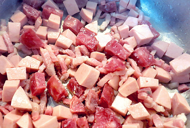 Speck, Salami, Fleischwurst für Soljanka angebraten
