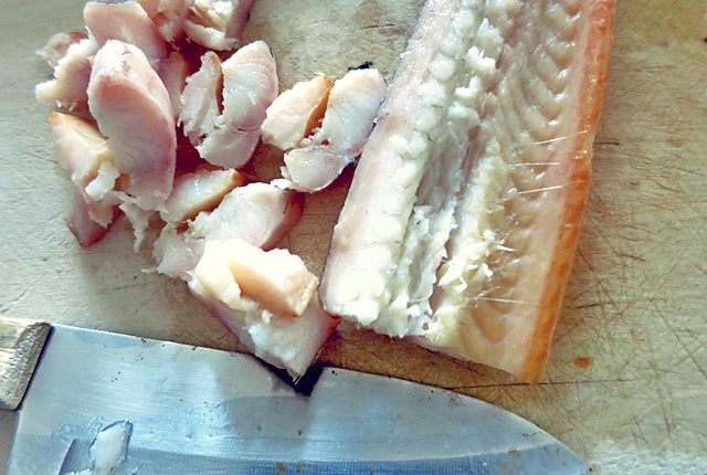 Schlei Räucher-Aal gehäutet und in Stücke geschnitten