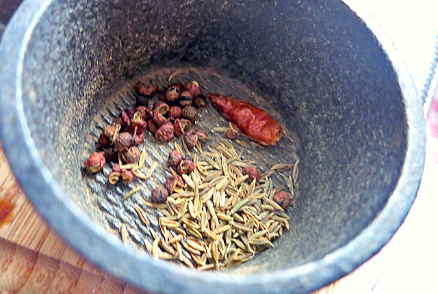 Cumin, Chili, Szechuan Pfeffer in Gewürzmühle