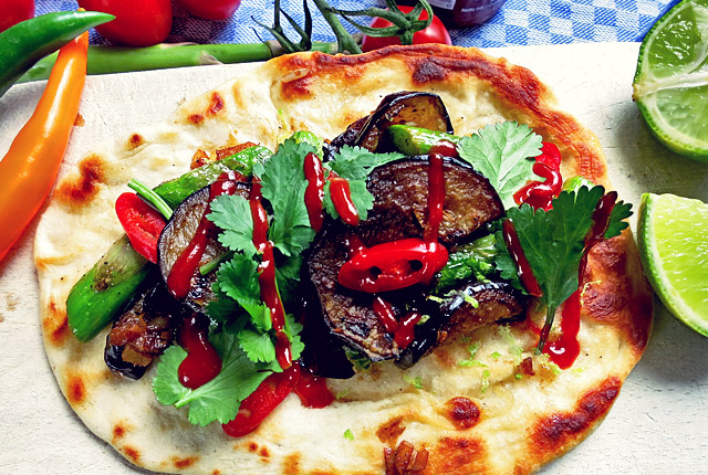 Dinkel Tacos vegan mit Spargel Auberginen