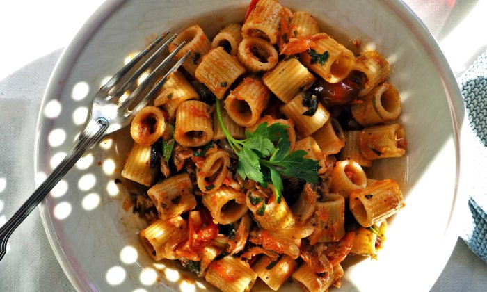 Pasta al Tonno mit Kapern, Cherrytomaten und Sardelle – der Pantry-Klassiker