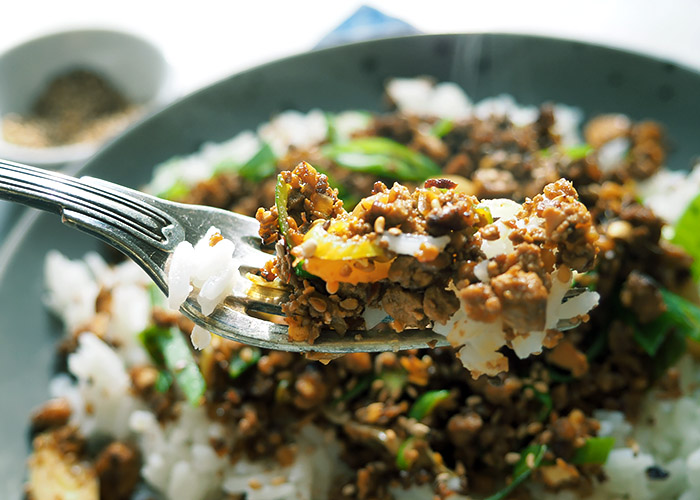 Vegan Bulgogi auf Gabel green