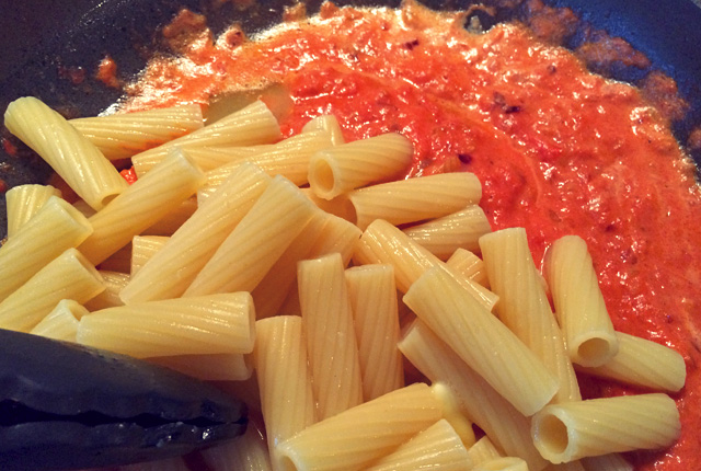 Vodka Nudeln in Pfanne